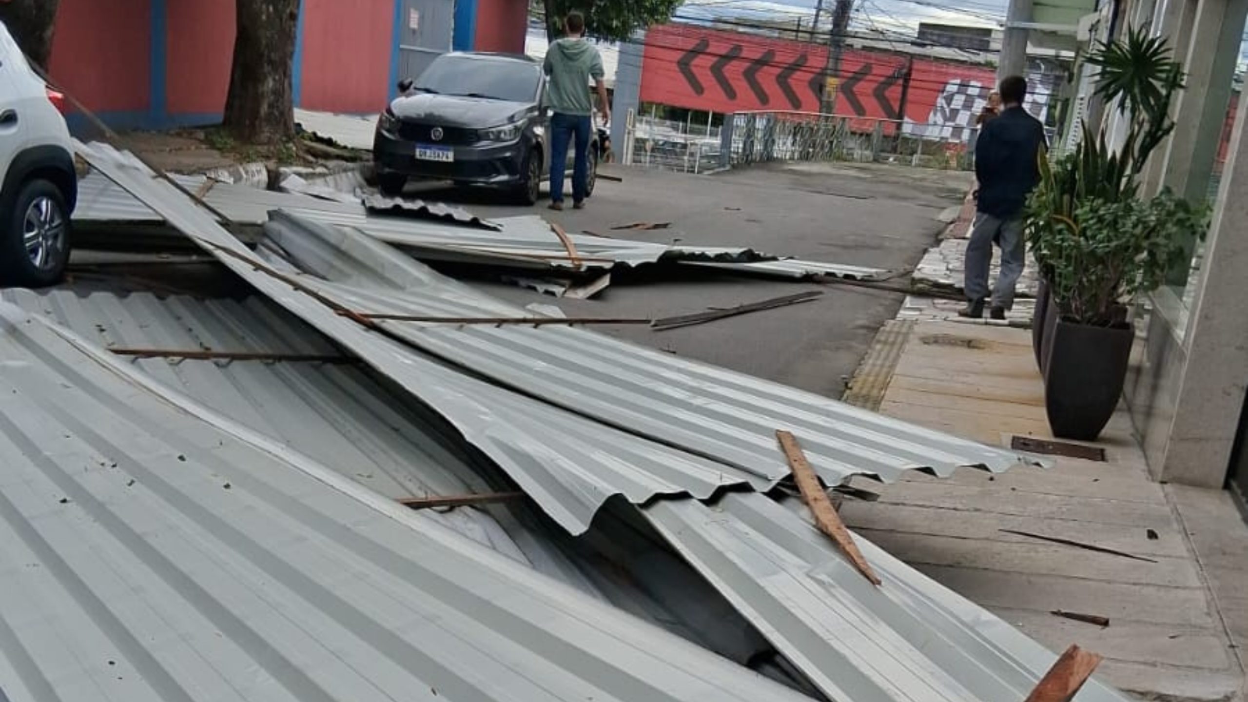 Parte do telhado da Escola Estadual Belmiro Teixeira caiu na tarde desta sexta-feira (4). A instituição de ensino fica localizado no bairro Eurico Salles, na Serra. Por ter caído na rua, parte da estrutura atingiu carros que estavam estacionados.