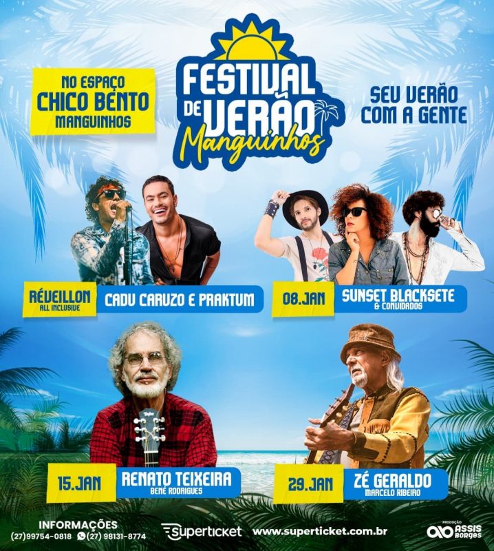Em Manguinhos, vai ter show com Renato Teixeira e Zé Geraldo no Espaço Chico Bento durante o Festival de Verão que será promovido pela casa.