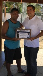 O porteiro que salvou uma criança de afogamento em um condomínio na Serra, no último final de semana, foi homenageado pelo vereador Cabo Porto (PSB) na tarde desta quarta-feira (23). O parlamentar entregou um certificado de Honra ao Mérito ao homem.