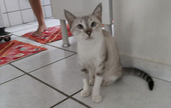 Muito assustada e com medo de qualquer tipo de gesto, hoje Mia já é outra gata. Aceita carinho e muitas vezes até procura por ele.