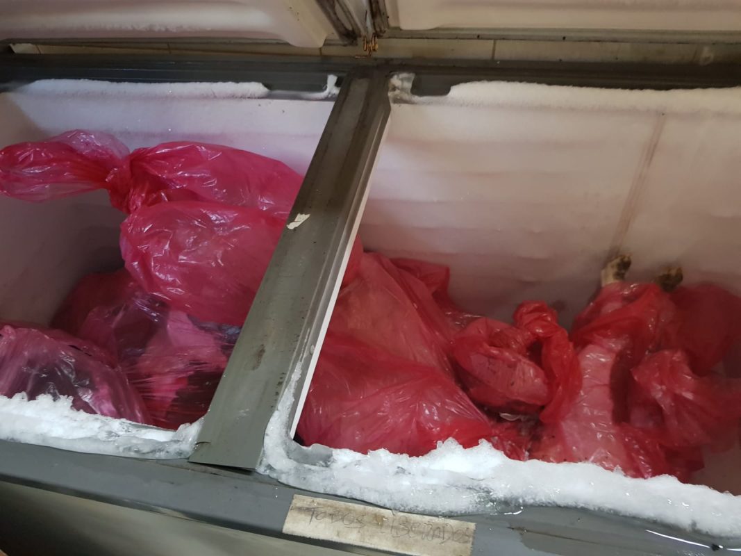 Dois freezers cheios de animais mortos, cachorro morto ensacado no chão, material cirúrgico enferrujado e exposto no local usado como centro cirúrgico, medicamentos vencidos e armazenados em geladeira junto com comida, uma caixa cheia de seringas e agulhas que seriam reutilizadas, uma máquina de secar roupa sendo usada como incubadora, um mau-cheiro generalizado, baias com animais em meio a entulhos de obras, peças e ferramentas de oficina mecânica.
