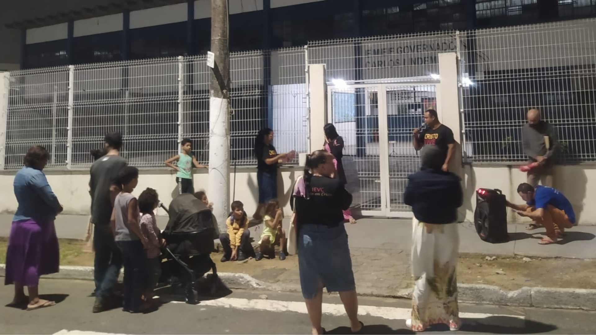 Pais, responsáveis e comunidade religiosa fazem culto em frente escola Governador Lindemberg, no Residencial Mestre Álvaro, na Serra, na noite dessa segunda-feira (10): pic.twitter.com/5EA80oCvoM