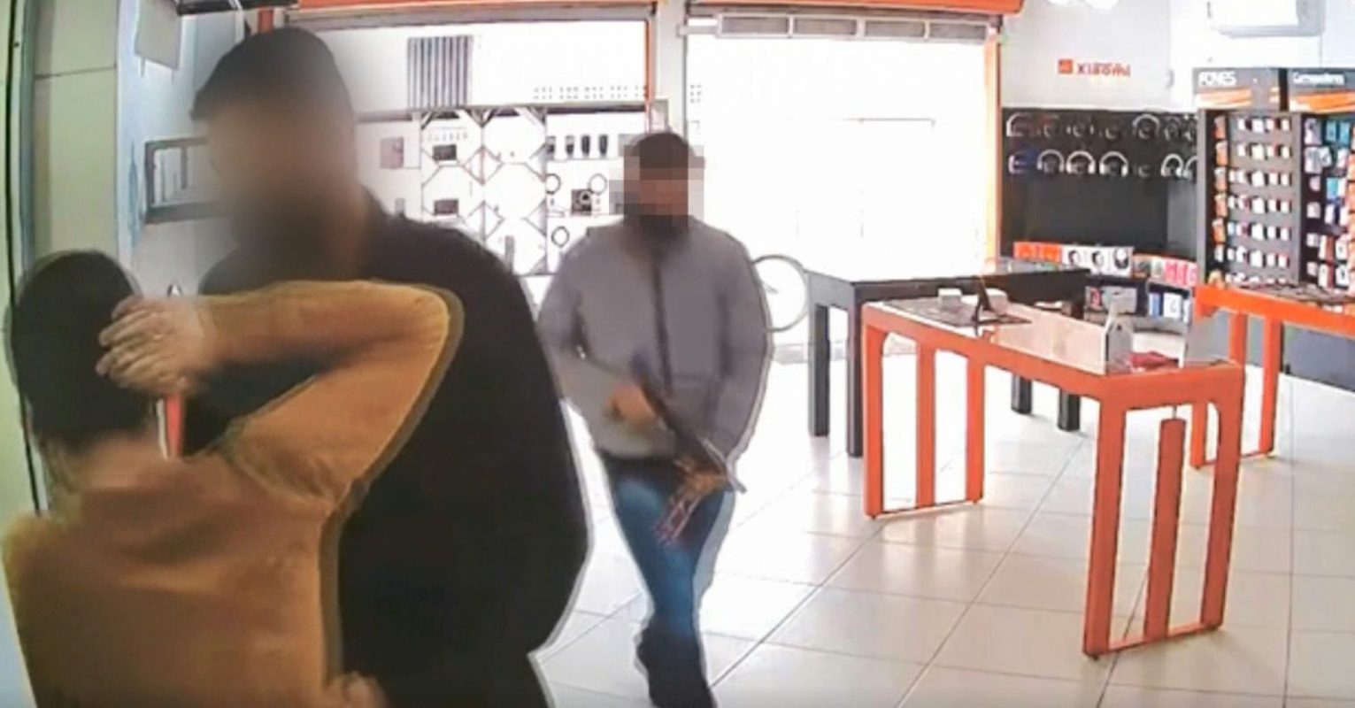 O assalto aconteceu por volta das 11h30 e foi registrado por câmeras de segurança do comércio. O vídeo mostra o momento em que dois jovens entram na loja e rendem o empresário.