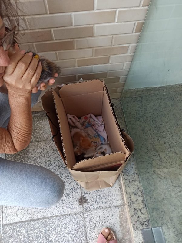 “Quando chegamos ao jornal para realizar a limpeza da semana, estava lá a caixa de papelão e os bebês envolto num tecido e dormindo como anjos. Pegamos a caixa subimos com ela e os animais estão num lar temporário e serão disponibilizados para adoção posteriormente, quando estiverem com 50 dias pelo menos”, disse Idalina Bonelli, que resgatou os animais e está cuidando dos filhotes.