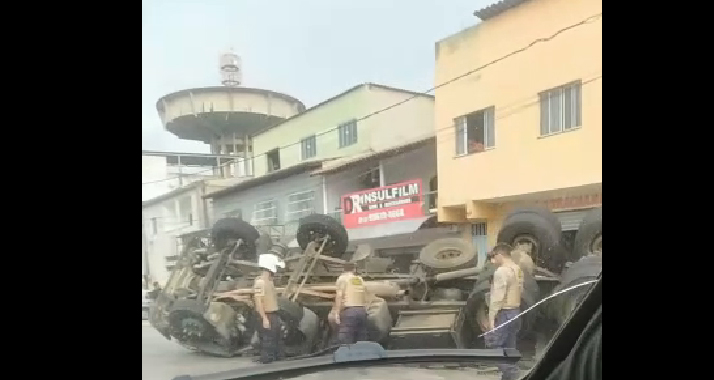 Uma carreta carregada de tijolos capotou na tarde desta quinta-feira (14) ao tentar fazer uma manobra na Avenida Guarapari, em Jardim Limoeiro, na Serra, próximo a caixa d’água da Cesan. Com o acidente dois veículos foram atingidos, um Uno Mile e um Picanto.