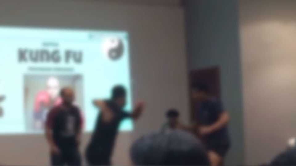 No fundo, é possível observar uma imagem – reproduzida por projetor – com o título da aula, nomeada de ‘Kung Fu’. Mãe de um aluno da escola, que preferiu não se identificar, demonstrou preocupação com a atividade, afirmando que isso poderia incentivar ainda mais a violência no ambiente escolar.