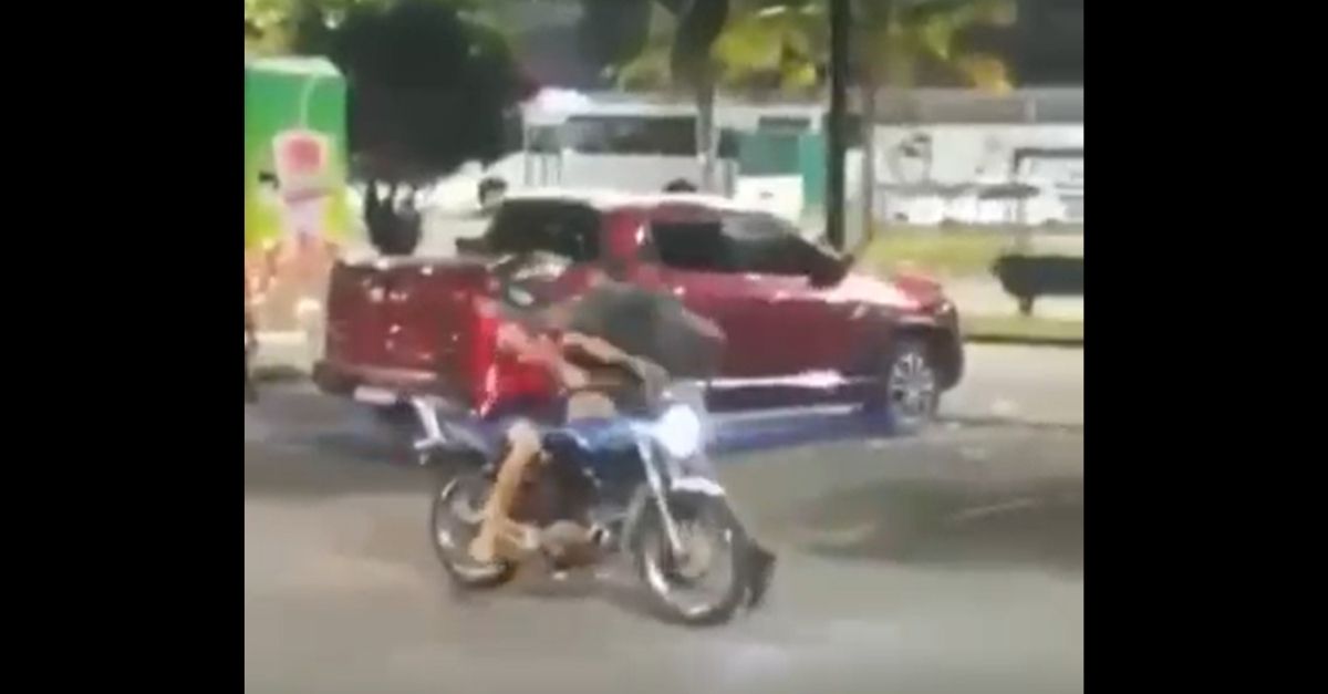 Um dos PM’s precisou dar uma chave de pescoço para que o rapaz caísse da moto. No vídeo que circula por grupos de whatsapp da comunidade, é possível ver o motociclista tentado fugir por várias ruas enquanto a viatura o persegue.