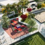 Além do campo society, o complexo vai contar com três quadras de areia, área com duchas, arquibancadas, dois vestiários, parquinho, bicicletários, guarita de controle de acesso, estacionamento, calçada cidadã, dispositivos com espaços exclusivos para pessoas com deficiência, paisagismo e nova iluminação.