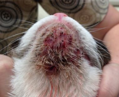 Em alguns casos, os mais avançados podem aparecer pústulas (espinhas) e um alto grau de inflamação e infecção. Isso é muito perigoso para a saúde geral do gato! Muitos gatos no começo só apresentam um queixo “sujinho”, com pequenos pontos pretos (cravinhos) entre os folículos do pelo. Em alguns casos, o quadro não sai disso, mas em outros, os cravos se tornam espinhas, e podem inclusive causar infecções bacterianas secundárias, por isso precisam ser tratados do modo correto.