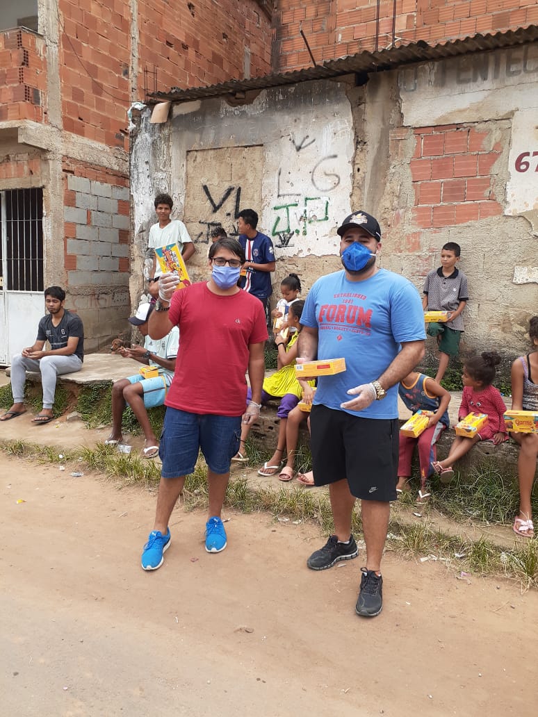 A ação foi realizada na manhã deste domingo. “Fizemos a entrega de forma bem ordenada, evitando aglomerações e levando alegria para as crianças”, cobra George Guababara, um dos voluntários que participou do ação.