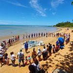 No total, foram recolhidos 316 quilos e 435 gramas de lixo da praia em apenas 40 minutos de ação. Depois de todo o lixo recolhido, os voluntários fizeram um abraço simbólico em volta do que foi retirado. “Depois que terminamos a limpeza da orla, fizemos um abraço simbólico em volta do material retirado e depois desenhamos uma tartaruga com o lixo recolhido como forma de sensibilizar os frequentadores do nosso paraíso. Foi lindo, foi incrível, foi divino! A praia estava linda, a maré baixa e o sol radiando”.
